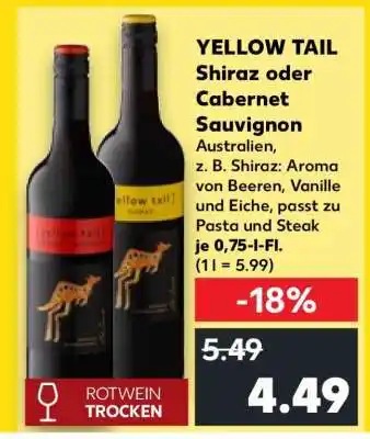 Jetzt im Angebot bei Kaufland: YELLOW TAIL Shiraz oder Cabernet Sauvignon ✅ Aktion gültig vom 5-03 bis 11-03.