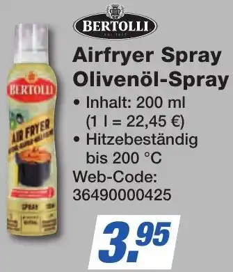 Jetzt im Angebot bei K+B Expert: BERTOLLI Airfryer Spray Olivenöl-Spray ✅ Aktion gültig vom 23-01 bis 1-02.