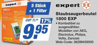 Jetzt im Angebot bei K+B Expert: expert Staubsaugerbeutel 1800 EXP ✅ Aktion gültig vom 27-02 bis 9-03.