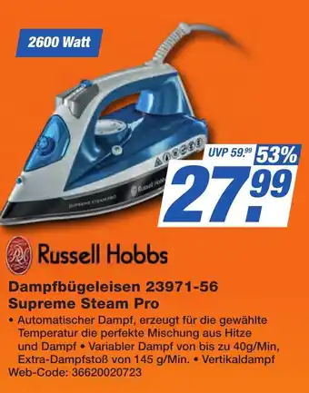 Jetzt im Angebot bei K+B Expert: Russell Hobbs Dampfbügeleisen 23971-56 Supreme Steam Pro ✅ Aktion gültig vom 20-02 bis 3-03.