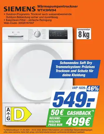 Jetzt im Angebot bei K+B Expert: SIEMENS Wärmepumpentrockner WT43HV94 ✅ Aktion gültig vom 20-02 bis 3-03.