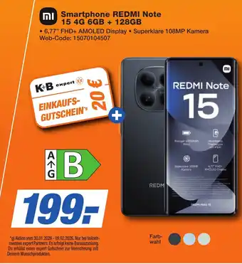 Jetzt im Angebot bei K+B Expert: Smartphone REDMI Note 15 4G 6 GB +128 GB ✅ Aktion gültig vom 30-01 bis 9-02.