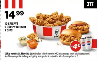 Jetzt im Angebot bei KFC: 10 CRISPYS 2 CRISPY BURGER 2 DIPS ✅ Aktion gültig vom 7-01 bis 5-02.