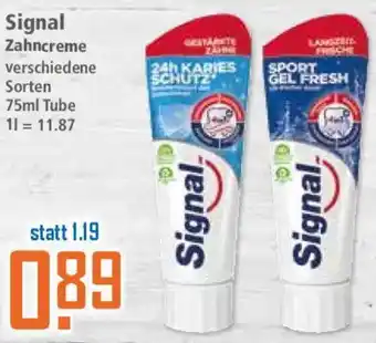 Das Angebot ist in verschiedenen Geschäften erhältlich. Schauen Sie sich alle Produkte an, um das günstigste Signal Zahncreme zu ergattern. Wenn Sie gerne nachschauen möchten, ob der Artikel woanders noch günstiger ist, werfen Sie einen Blick auf die Kategorie 'Supermärkte'. Möglicherweise sind diese Angebote auch interessant für Sie: Signal Zahncreme Kariesschutz, Sensodyne Zahncreme & Sensodyne Zahncreme.