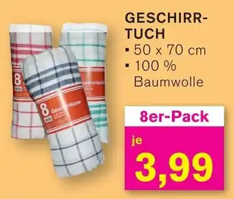Das Angebot ist in verschiedenen Geschäften erhältlich. Schauen Sie sich alle Produkte an, um das günstigste GESCHIRRTUCH 8er-Pack zu ergattern. Wenn Sie gerne nachschauen möchten, ob der Artikel woanders noch günstiger ist, werfen Sie einen Blick auf die Kategorie 'Discounter'. Möglicherweise sind diese Angebote auch interessant für Sie: Geschirrtuch aus Baumwolle, 5er-Pack, OHO Geschirrtuch-Rolle 8er-Pack & Geschirrtuch.