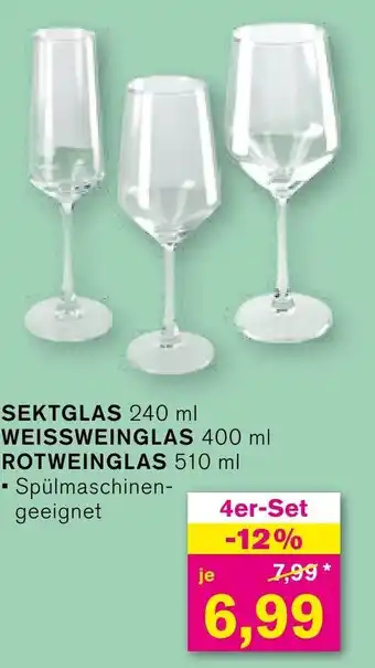 SEKTGLAS 240 ml, WEISSWEINGLAS 400 ml o. ROTWEINGLAS 510 ml Angebote und Aktionen bei KODi