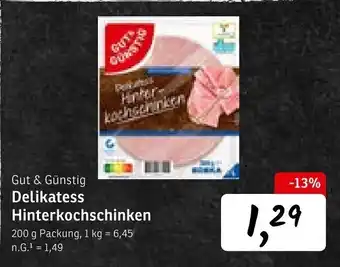 Jetzt im Angebot bei KONSUM: Gut & Günstig Delikatess Hinterkochschinken ✅ Aktion gültig vom 13-04 bis 18-04.