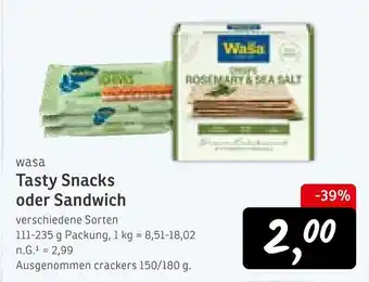 Jetzt im Angebot bei KONSUM: Wasa tasty snacks ✅ Aktion gültig vom 23-02 bis 28-02.
