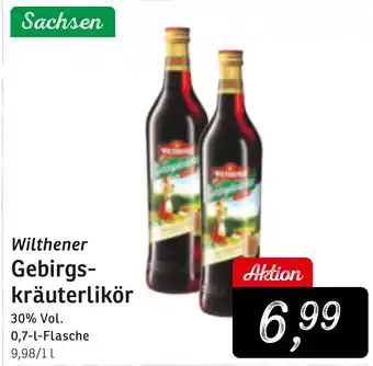Wilthener Gebirgskräuterlikör Aktion bei KONSUM