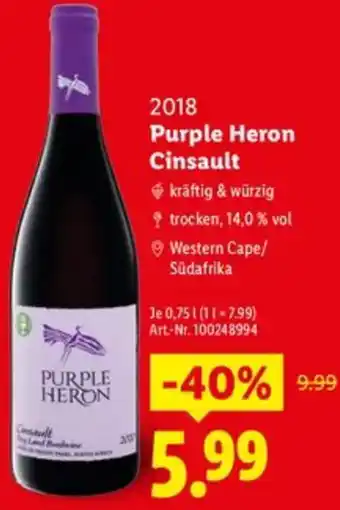 Jetzt im Angebot bei Lidl: 2018 Purple Heron Cinsault ✅ Aktion gültig vom 1-01 bis 31-01.