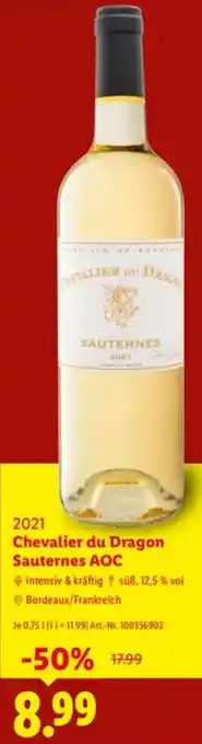 Jetzt im Angebot bei Lidl: 2021 Chevalier du Dragon Sauternes AOC ✅ Aktion gültig vom 1-01 bis 31-01.