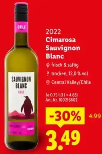 Jetzt im Angebot bei Lidl: 2022 Cimarosa Sauvignon Blanc ✅ Aktion gültig vom 1-01 bis 31-01.
