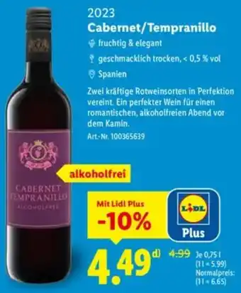 Jetzt im Angebot bei Lidl: 2023 Cabernet/Tempranillo ✅ Aktion gültig vom 1-01 bis 31-01.