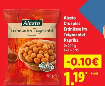 Jetzt im Angebot bei Lidl: Alesto cruspies erdnüsse im teigmantel paprika ✅ Aktion gültig vom 1-03 bis 31-12.