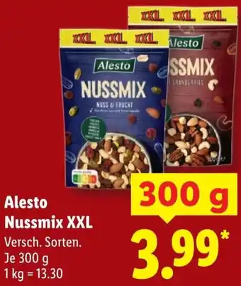 Den Preis von dem Alesto Nussmix XXL finden Sie auch oben auf der Website, zusammen mit dem Datum, ab wann das Angebot erhältlich ist. Sie können die Preise auch im aktuellen Lidl Prospekt nachhalten oder auf der Lidl Website nachschauen. Durch die Angebote können Sie sicher sein, die Lidl Produkte zum absoluten Bestpreis zu ergattern.