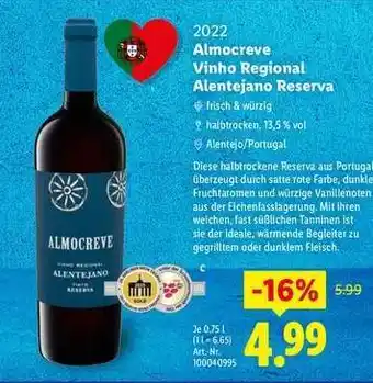 Jetzt im Angebot bei Lidl: Almocreve Vinho Regional Alentejano Reserva ✅ Aktion gültig vom 1-03 bis 31-03.