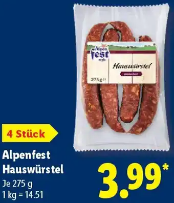 Jetzt im Angebot bei Lidl: Alpenfest Hauswürstel ✅ Aktion gültig vom 11-01 bis 17-01.