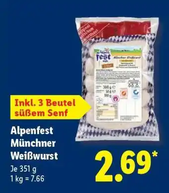 Jetzt im Angebot bei Lidl: Alpenfest Münchner Weißwurst ✅ Aktion gültig vom 12-01 bis 17-01.