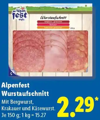 Jetzt im Angebot bei Lidl: Alpenfest Wurstaufschnitt ✅ Aktion gültig vom 11-01 bis 17-01.