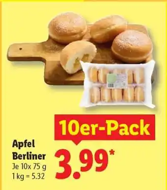 Abgesehen von Apfel Berliner, bietet Lidl eine Menge anderer Artikel an. Behalten Sie den wöchentlichen Lidl Prospekt im Blick, um die besten Angebote und Aktionen nicht zu verpassen. Abgesehen von Apfel Berliner können Sie weitere, interessante Angebote entdecken: Lidl Backshop Apfel Berliner, BERLINER Pilsner & Berliner Luft.