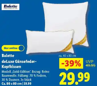 Jetzt im Angebot bei Lidl: Balette deLuxe Gänsefeder Kopfkissen ✅ Aktion gültig vom 11-01 bis 17-01.