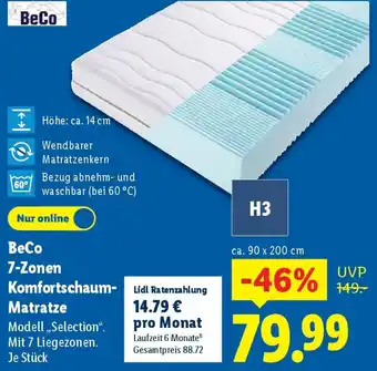 Jetzt im Angebot bei Lidl: BeCo 7-Zonen Komfortschaum Matratze ✅ Aktion gültig vom 29-12 bis 3-01.