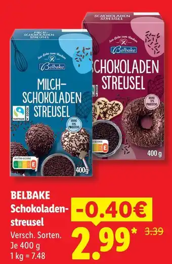 Jetzt im Angebot bei Lidl: Belbake schokoladen streusel ✅ Aktion gültig vom 29-03 bis 31-12.