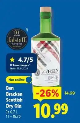 Jetzt im Angebot bei Lidl: Ben Bracken Scottish Dry Gin ✅ Aktion gültig vom 26-01 bis 31-01.