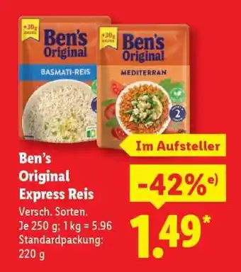 Jetzt im Angebot bei Lidl: Ben’s Original Express Reis ✅ Aktion gültig vom 5-01 bis 10-01.