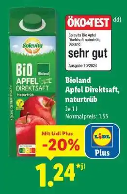 Jetzt im Angebot bei Lidl: Bioland Apfel Direktsaft, naturtrüb ✅ Aktion gültig vom 2-03 bis 7-03.