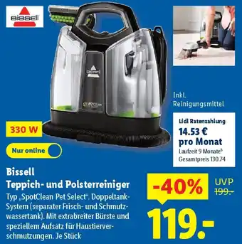 Jetzt im Angebot bei Lidl: Bissell Teppich- und Polsterreiniger ✅ Aktion gültig vom 9-02 bis 15-02.