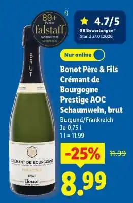 Bonot Père & Fils Crémant de Bourgogne Prestige AOC Schaumwein, brut Angebote und Online Aktionen direkt aus dem aktuellen Lidl Angebot