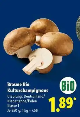 Jetzt im Angebot bei Lidl: Braune Bio Kulturchampignons ✅ Aktion gültig vom 9-02 bis 14-02.