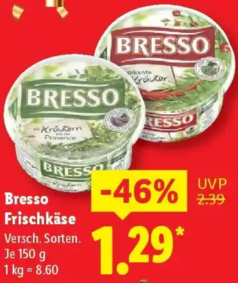 Werfen Sie einen Blick auf die günstigsten Produkte zwischen all den Angeboten! Wenn Sie gerne wissen möchten, ob Lidl die höchsten Rabatte für Bresso Frischkäse anbietet, vergleichen Sie die Angebote ganz einfach auf der Startseite mit den anderen Geschäften.