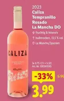 Jetzt im Angebot bei Lidl: Caliza Tempranillo Rosado La Mancha DO ✅ Aktion gültig vom 1-02 bis 28-02.