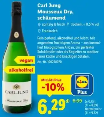 Jetzt im Angebot bei Lidl: Carl Jung Mousseux Dry, schäumend ✅ Aktion gültig vom 1-01 bis 31-01.