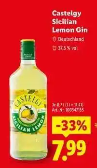 Jetzt im Angebot bei Lidl: Castelgy Sicilian Lemon Gin ✅ Aktion gültig vom 1-02 bis 28-02.