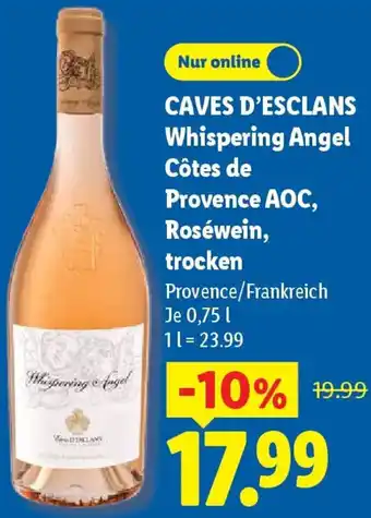 CAVES D'ESCLANS Whispering Angel Côtes de Provence AOC, Roséwein, trocken Angebote und Aktionen bei Lidl