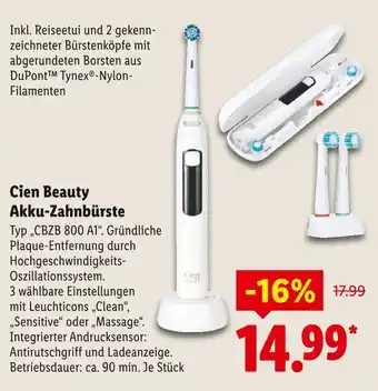 Jetzt im Angebot bei Lidl: Cien beauty akku-zahnbürste ✅ Aktion gültig vom 22-12 bis 27-12.