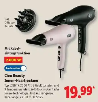 Jetzt im Angebot bei Lidl: Cien Beauty Ionen-Haartrockner ✅ Aktion gültig vom 9-02 bis 14-02.