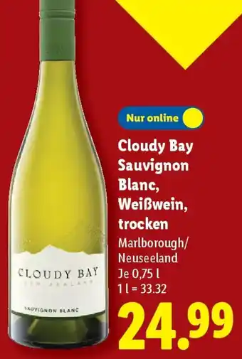 Jetzt im Angebot bei Lidl: Cloudy Bay Sauvignon Blanc, Weißwein, trocken ✅ Aktion gültig vom 15-12 bis 21-12.