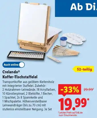 Jetzt im Angebot bei Lidl: Crelando Koffer-Tischstaffelei ✅ Aktion gültig vom 29-12 bis 3-01.