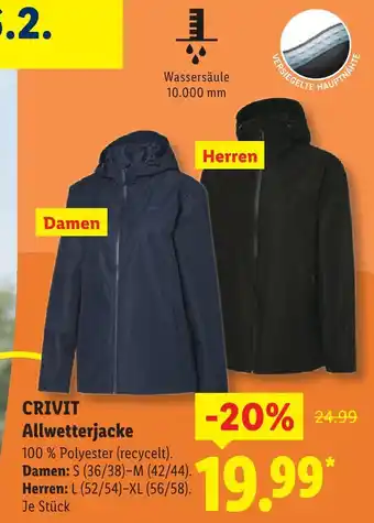 Jetzt im Angebot bei Lidl: Crivit allwetterjacke damen ✅ Aktion gültig vom 16-02 bis 21-02.
