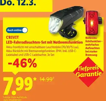 Crivit led-fahrradleuchten-set mit notbremsfunktion-Angebot bei Lidl