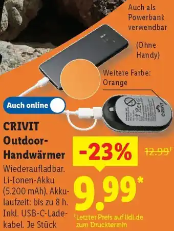 Jetzt im Angebot bei Lidl: CRIVIT Outdoor Handwärmer ✅ Aktion gültig vom 16-02 bis 22-02.