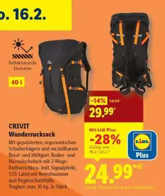 Jetzt im Angebot bei Lidl: CRIVIT Wanderrucksack ✅ Aktion gültig vom 16-02 bis 21-02.