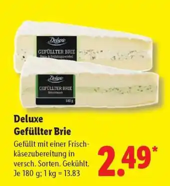 Jetzt im Angebot bei Lidl: Deluxe Gefüllter Brie ✅ Aktion gültig vom 16-03 bis 21-03.