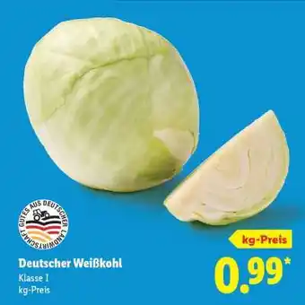 Jetzt im Angebot bei Lidl: Deutscher Weißkohl ✅ Aktion gültig vom 16-03 bis 21-03.