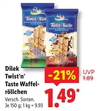 Jetzt im Angebot bei Lidl: Dilek twist’n’ taste waffelröllchen peanut & hazelnut ✅ Aktion gültig vom 9-03 bis 14-03.