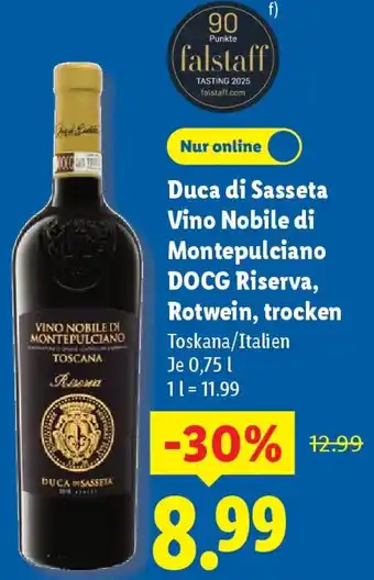 Jetzt im Angebot bei Lidl: Duca di Sasseta Vino Nobile di Montepulciano DOCG Riserva, Rotwein, trocken ✅ Aktion gültig vom 11-01 bis 17-01.